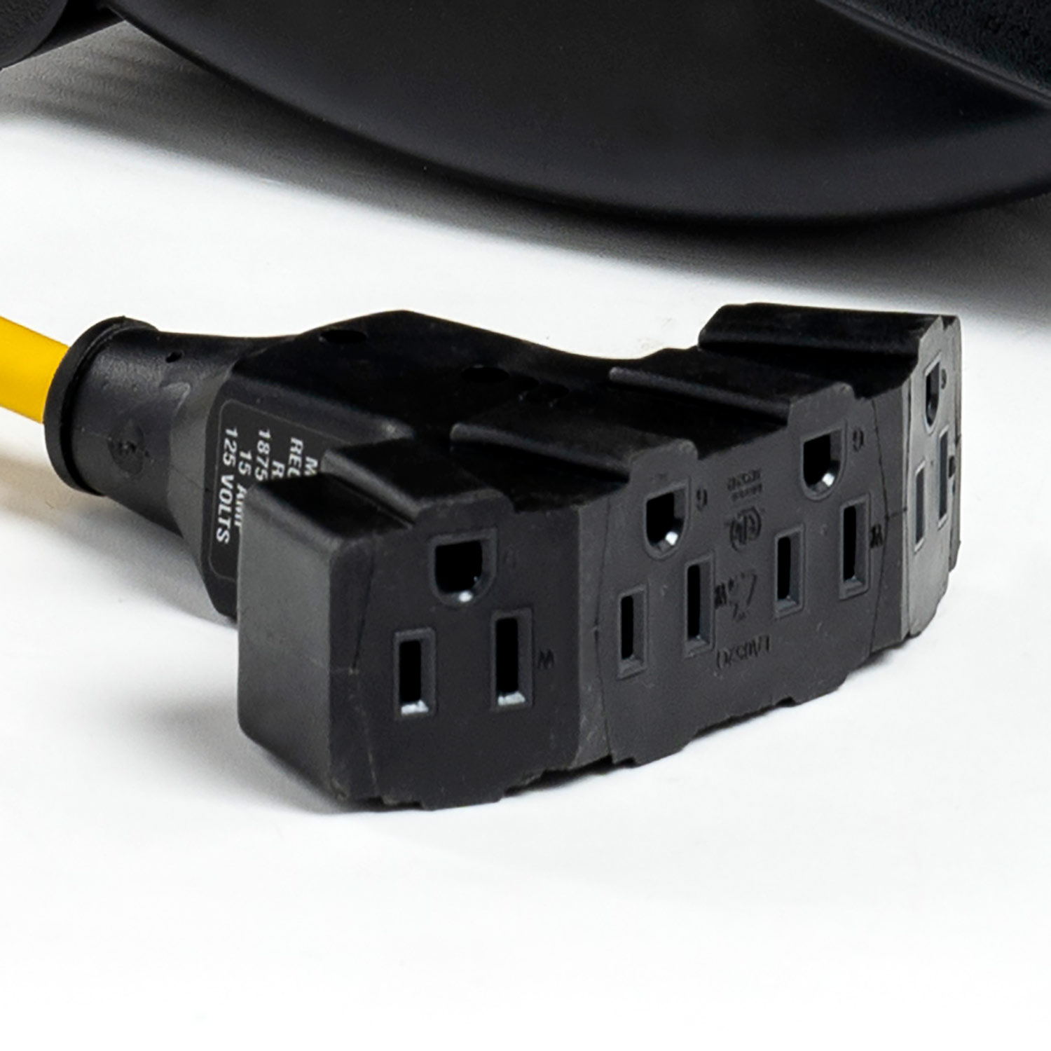 - Quad outlet has a 15 AMP circuit breaker built-in (breaker is not on the reel)